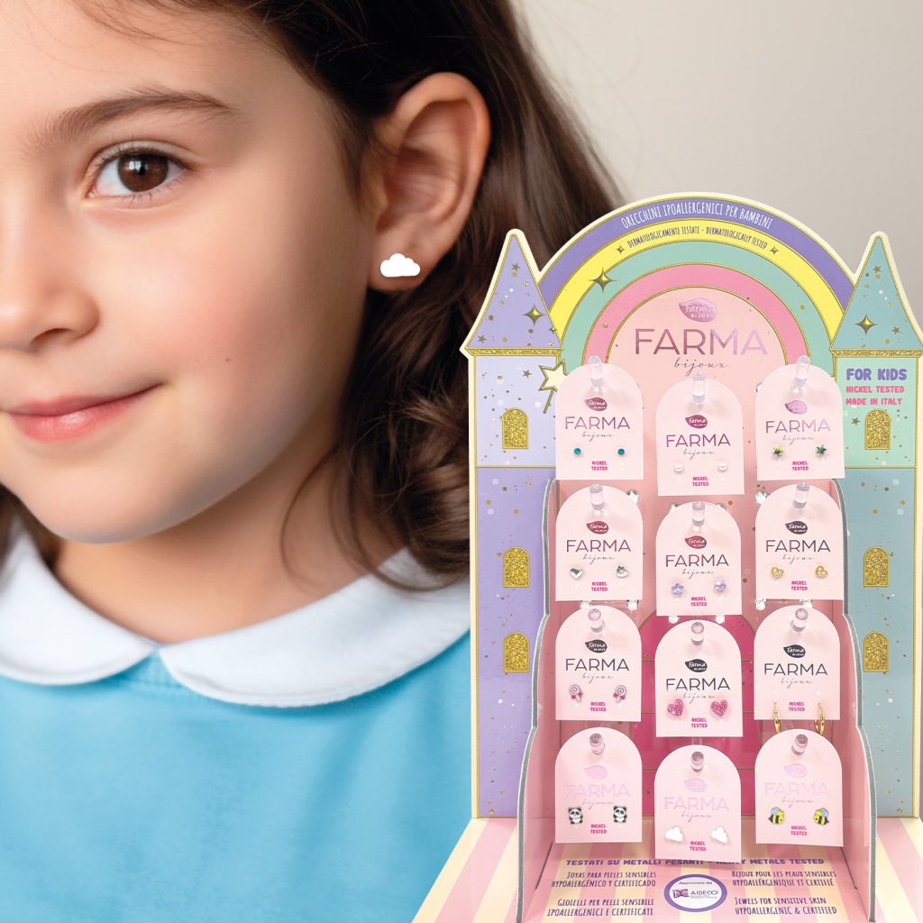 Farma Bijoux è adatto a tutti, anche ai bambini. Sono gli unici gioielli in farmacia approvati da Aideco, l’Associazione Italiana Dermatologi e Cosmetologi.