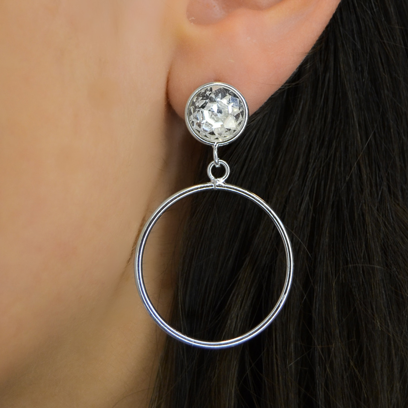 ORECCHINI A CERCHIO PENDENTI SILVER CON CRISTALLO BIANCO
