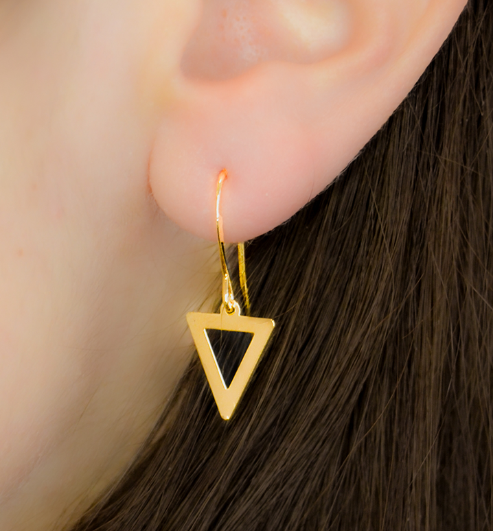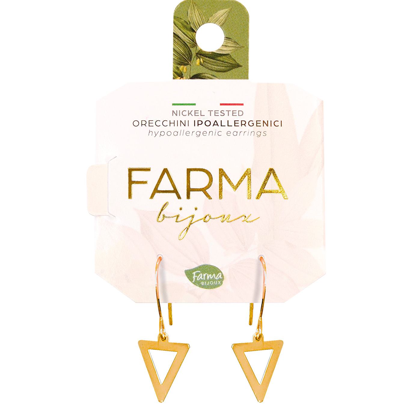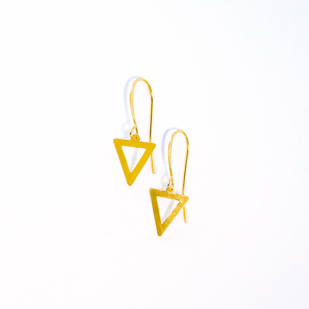 Articolo realizzato interamente in ottone ecologico placcato oro, ciondolo a forma di triangolo. Ideati e realizzati da Bioetic Bijoux srls in Italia.