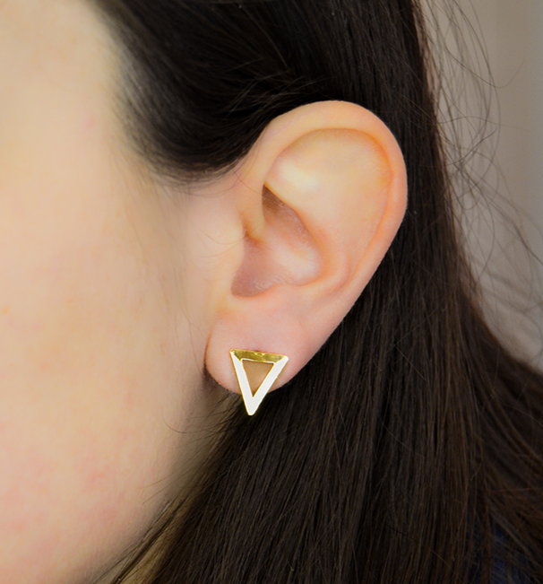 Articolo realizzato interamente in ottone ecologico placcato oro a forma di triangolo. Ideati e realizzati da Bioetic Bijoux srls in Italia.